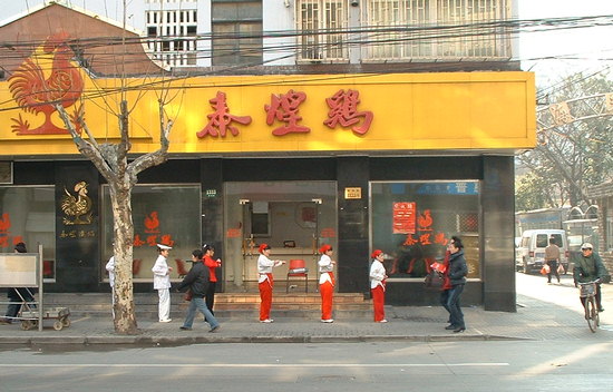 …..In the early morning the staff of this restaurant are doing their exercises.
